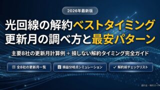 光回線の解約ベストタイミングを主要8社で徹底比較。更新月の計算方法・マイページでの確認手順・損益分岐点シミュレーションで「待つ vs 今すぐ」を判定。2025年7月の料金改定情報も。