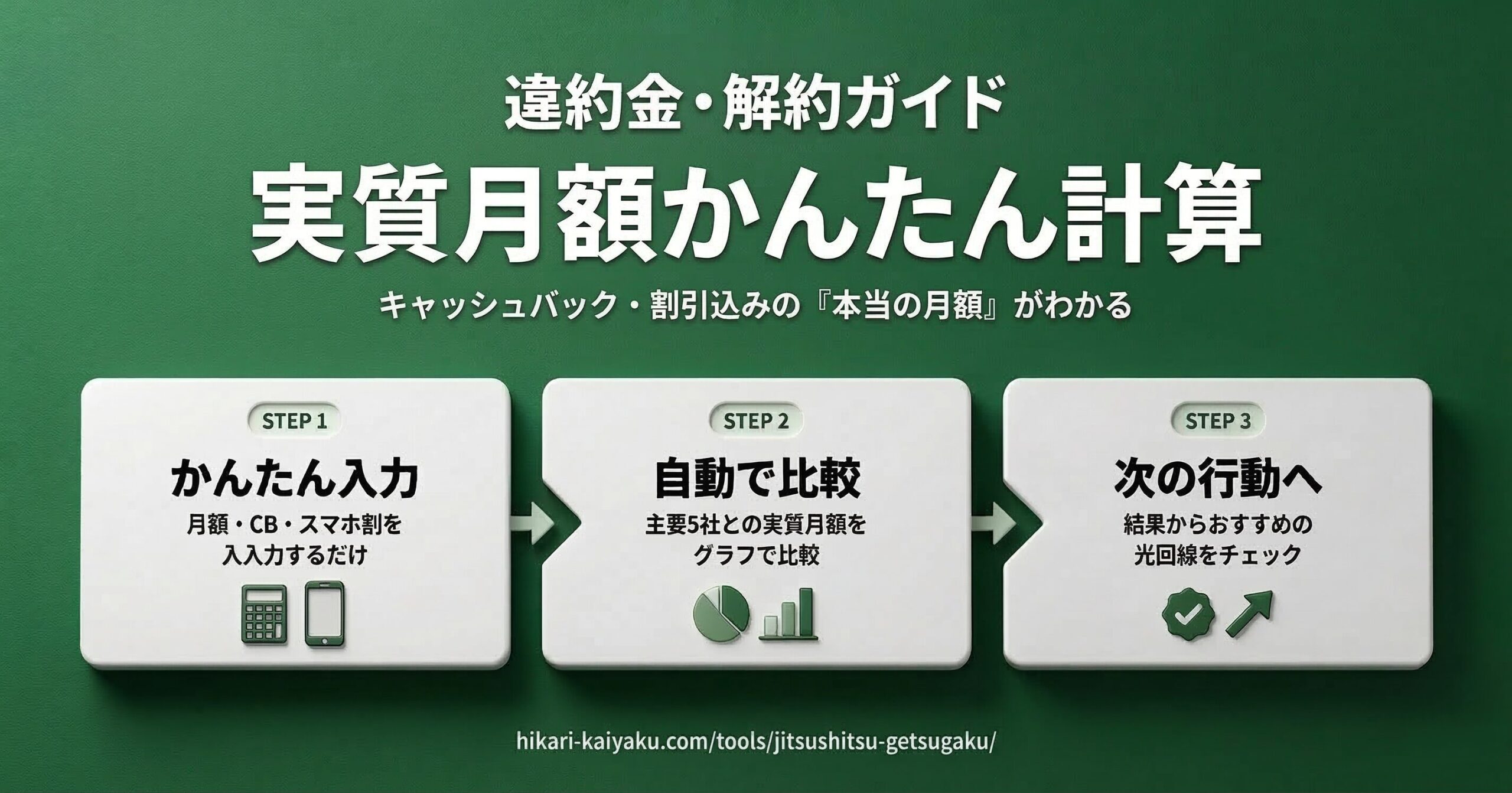 月額料金・キャッシュバック・スマホセット割など、気になる項目を入力するだけで「実質月額」を自動計算できるツールです。